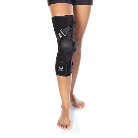 De OA Spiralâ„¢ maakt gebruik van een driepunts hefboomsysteem en een niet-elastische riem om de knie uit varus of valgus te trekken en pijn te verminderen.