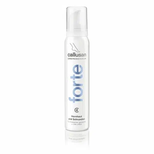 Callusan forte met hoog gedoseerd ureum (> 15%) en sheaboter maakt zelfs hardnekkige eelt duidelijk zachter. De hydraterende verzorging verhoogt de elasticiteit en soepelheid van de huid. Bij regelmatig gebruik van het crèmeschuim wordt het uiterlijk van de huid aanzienlijk verbeterd en wordt verdere eeltvorming voorkomen. Vrij van geur- en kleurstoffen, geschikt voor diabetici.