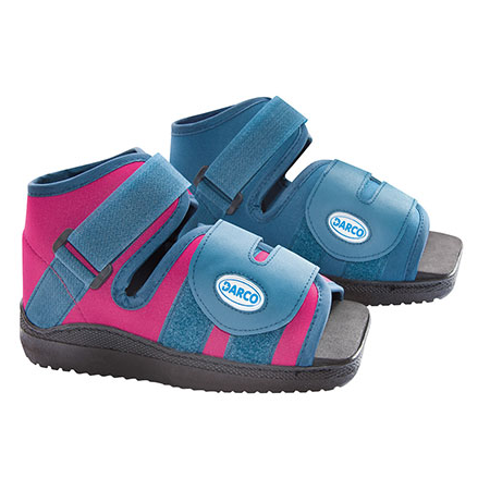 De Darco SlimLine® kinder-gipsschoen is, dankzij de ruime vierkant opbouw in combinatie met flexibele sluiting technologie, in staat om voldoende ruimte te bieden aan (gips)verbanden bij fracturen en gipsbehandelingen. Het gewicht van het kind wordt zoveel mogelijk naar voren gehouden, om zo gipswrijving tegen het scheenbeen te verminderen. Voor nabewerking kan de zool eruit gehaald worden. De bovenzijde van de schoen is gemaakt van weersbestendig Nylon en de speciale zool biedt een effectieve schokabsorptie en garandeert een psychologisch correct gangpatroon. De Darco SlimLine ® kinder-gipsschoen kan zowel links als rechts gedragen worden en is verkrijgbaar in twee verschillende kleuren.