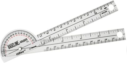 Deze transparante plastic goniometer maakt observatie van de bewegingsas van een gewricht en zijn bewegingsbereik mogelijk.