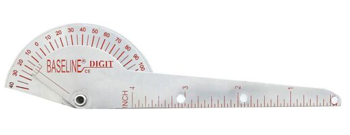 Deze goniometer wordt ook wel de goniometer met één hand genoemd, omdat de therapeut alleen met de hand kan aflezen