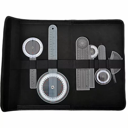 Het doorzichtige plastic van de Saehan-goniometers maakt observatie van de bewegingsas van het gewricht en het bewegingsbereik mogelijk.